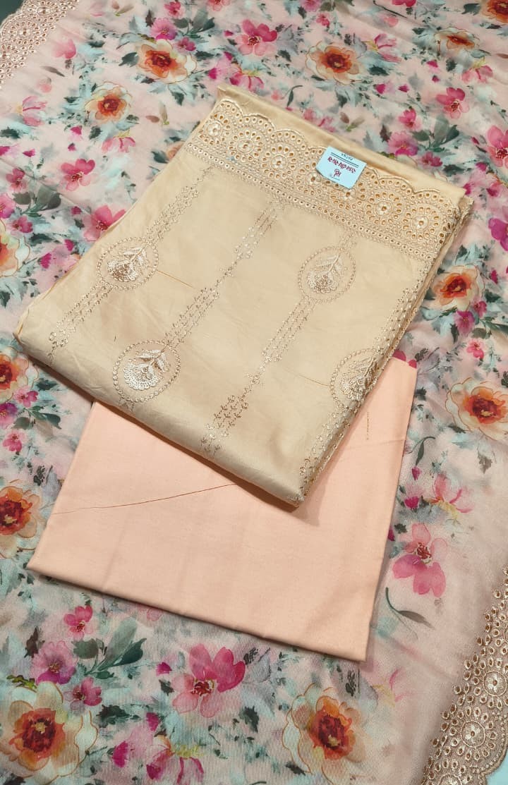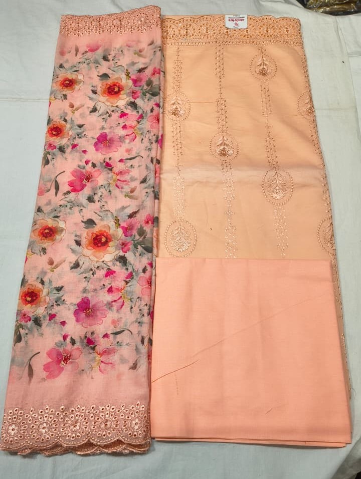 This Premium All Cotton Unstitched Suit Set is a perfect blend of comfort, elegance, and everyday style. The suit top is crafted from soft cotton fabric and features delicate embroidery with graceful motifs that give it a refined ethnic look. The breathable cotton material makes it ideal for long wear, especially in warm weather.