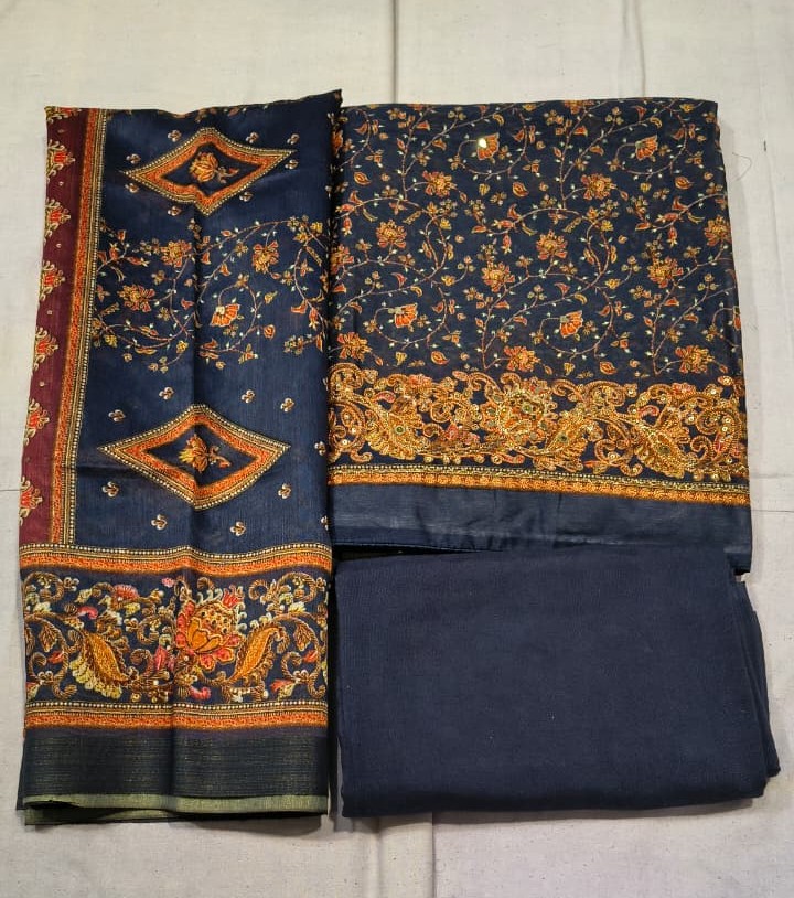 This Premium Cotton Chanderi Suit Set is designed for women who love elegance with comfort. The suit features a beautifully printed Cotton Chanderi fabric enhanced with delicate embroidery work that adds a graceful ethnic charm.